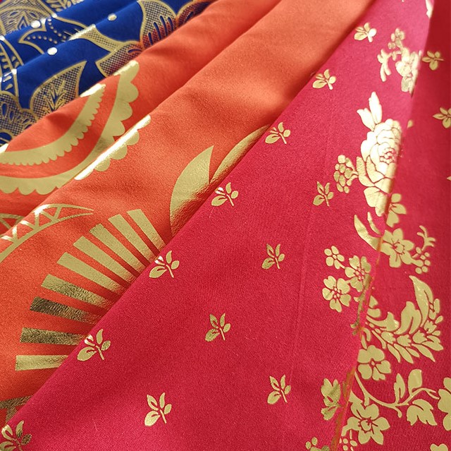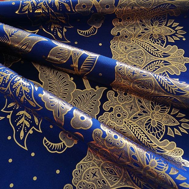 Tessuto con stampa dorata al 100% in poliestere